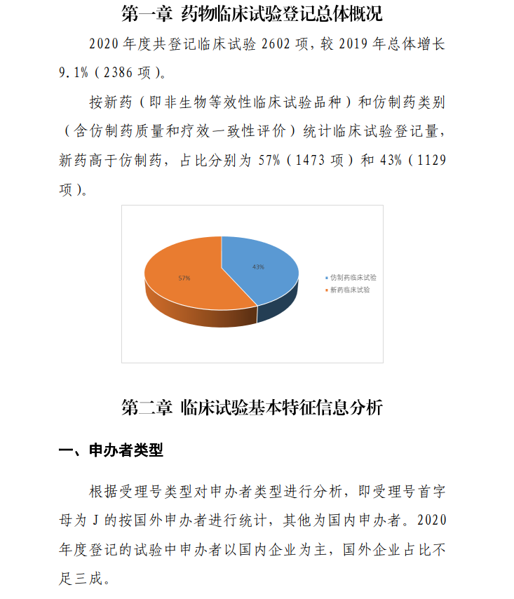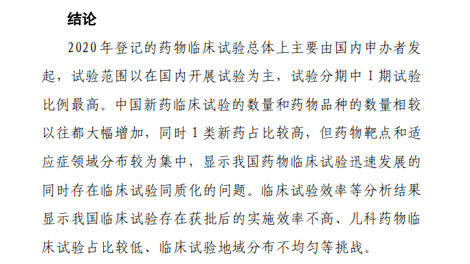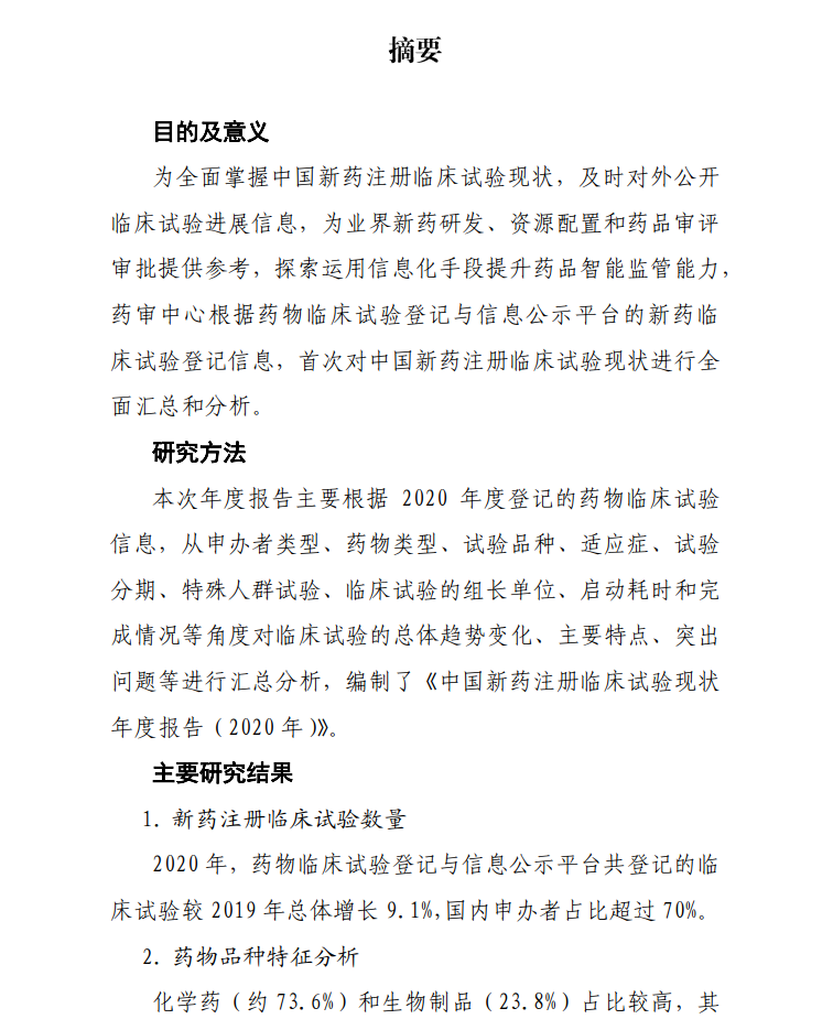 为全面掌握中国新药注册临床试验进展,加强药品监管能力建设,药审中心根据药物临床试验登记与信息公示平台登记信息,首次对中国新药注册临床试验现状进行了全面汇总分析,撰写形成《中国新药注册临床试验现状年度报告(2020年)》。