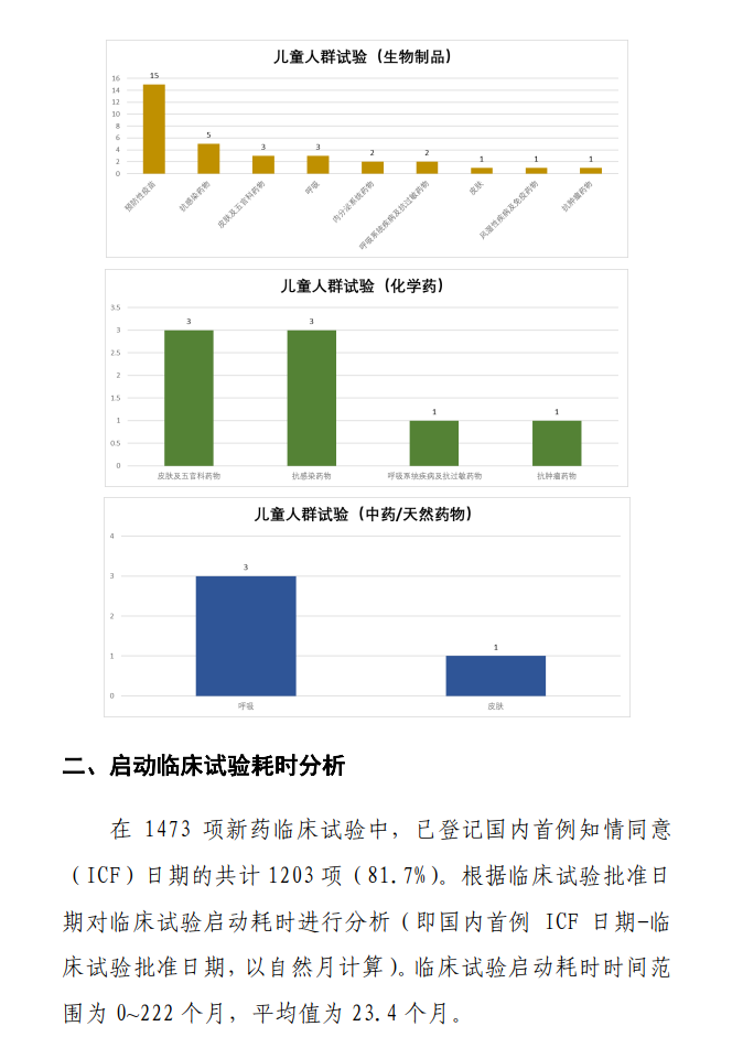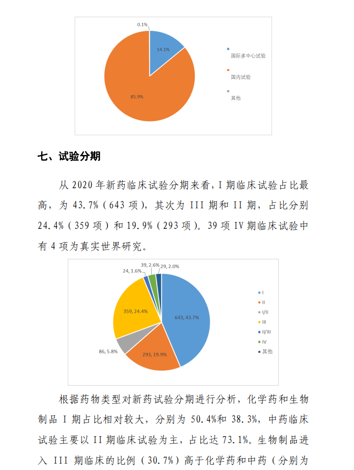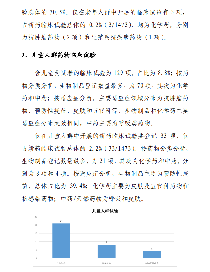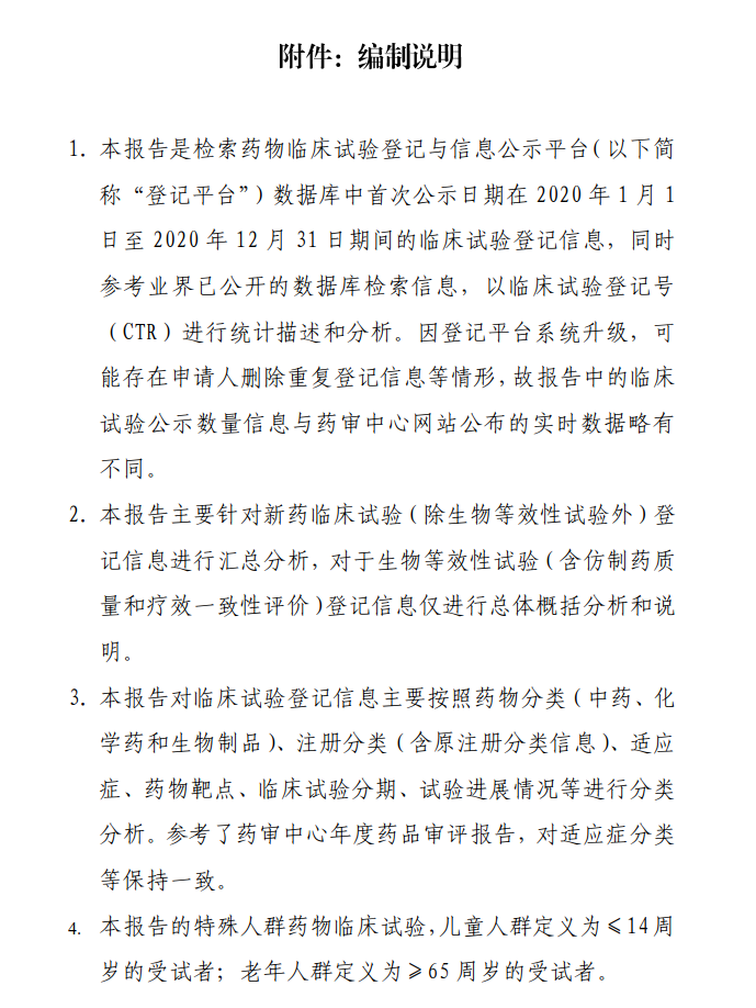 本报告根据2020年度登记的药物临床试验信息,从申办者类型、药物类型、试验品种、适应症、试验分期、特殊人群试验、临床试验的组长单位、启动耗时和完成情况等角度对临床试验的整体进展、主要特点、变化趋势、和突出问题等进行汇总、梳理和分析。