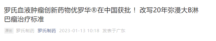 1月13日,罗氏宣布,优罗华®两项适应症获得中国国家药品监督管理局(NMPA)批准,分别为: