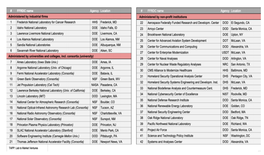 美国当前国家实验室列表,图片源自Deep Tech Entrepreneurship: From Lab to Impact